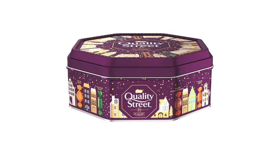 A Quality Street ikonikus válogatása több mint 80 éve hoz örömöt az ünnepi pillanatokba. Ez a 750 g-os fémdoboz tele van a legfinomabb csokoládés és karamellás bonbonokkal, különféle ízekben és színes csomagolásban – mindenki talál benne kedvencet!