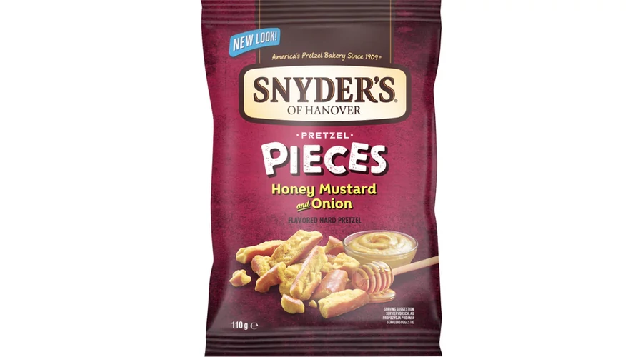 A Snyder’s Pretzel Pieces Honey Mustard & Onion ropogós, darabokra tört kovászos perec, amelyet mézes-mustáros és enyhén hagymás fűszerezéssel vontak be. Az édes, savanykás és sós ízek tökéletes egyensúlya teszi igazán addiktív snackké.