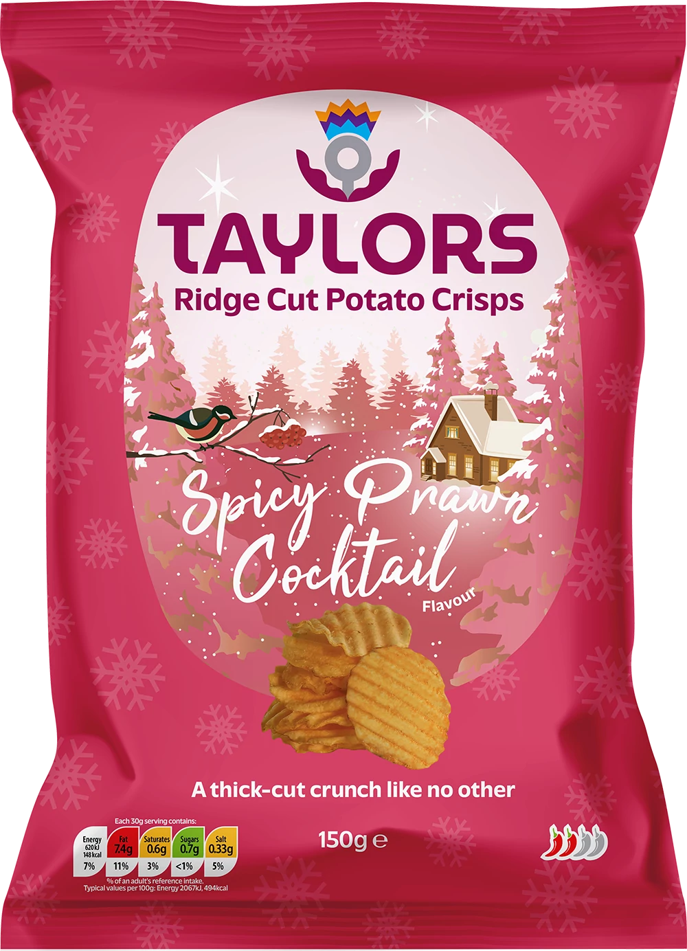 Taylors Festive Spicy Prawn Cocktail Flavour Ridge-cut Potato Crisps 150g