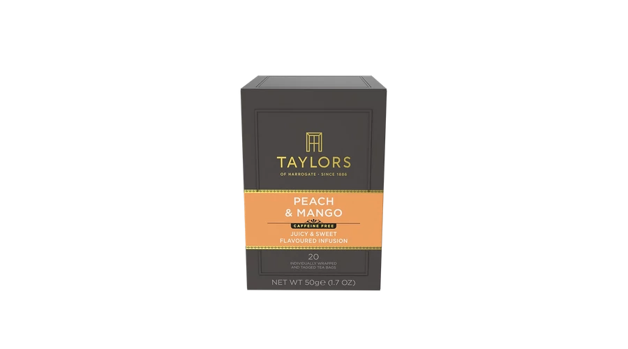 A Taylors Peach & Mango Tea egy egzotikus, gyümölcsös ízvilágú teakeverék, amely a zamatos őszibarack és az édes mangó tökéletes harmóniáját kínálja. Koffeinmentes gyümölcstea, amely melegen és hidegen is frissítően hat – bármely napszakban tökéletes választás.