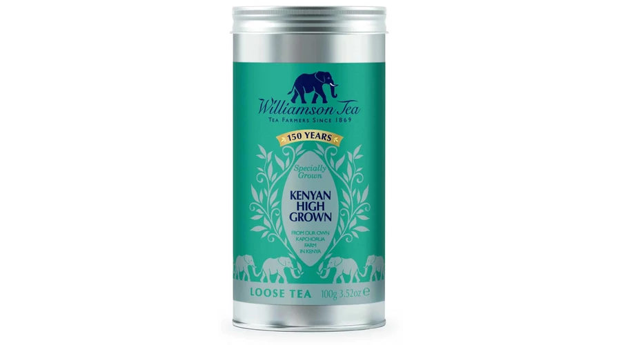 A Williamson Loose High Grown Kenyan Tea Caddy prémium minőségű szálas fekete tea, amely a kenyai magaslati ültetvényekről származik. Az intenzív napsütés, az egyenletes csapadék és a magas tengerszint feletti termesztés gazdag, élénk ízű teát eredményez.